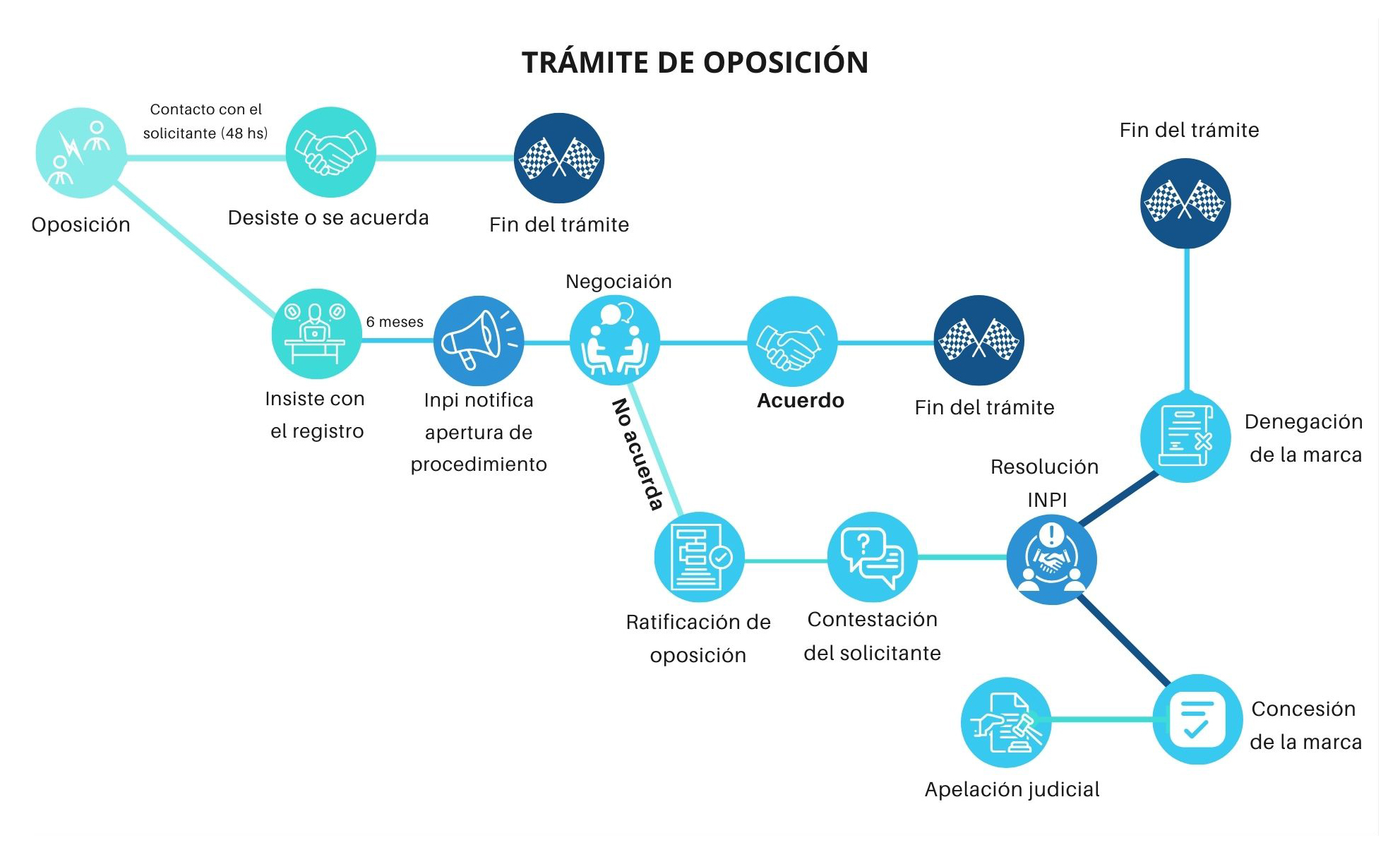 Debemos gestionar el retiro mediante limitaciones u otros acuerdos. Una vez que se obtenga el retiro de la oposición, se presentan los escritos en el INPI y se destraba el expediente que sigue su trámite para la concesión.